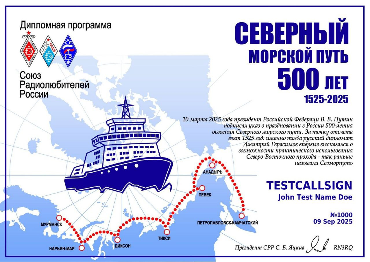 В период с 10 сентября по 10 октября 2025 года состоятся дни активности Союза радиолюбителей России, посвященные 500-летию с начала освоения Северного Морского Пути (СМП).